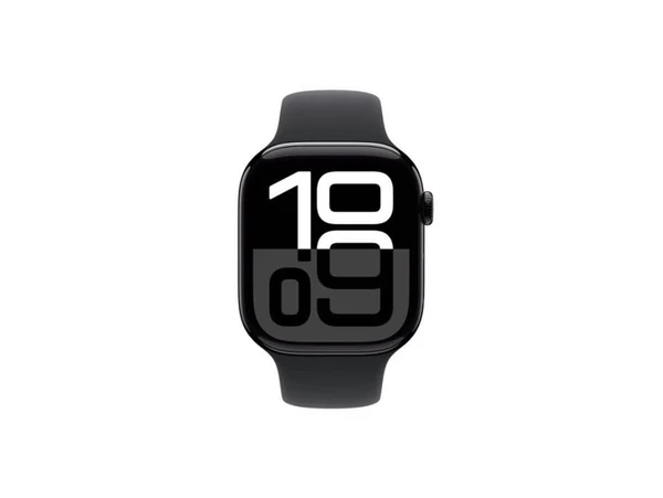 ساعة ابل سيريز 10 جي بي اس - 42 ملم - هيكل من الألومنيوم باللون الأسود مع حزام رياضي أسود - مقاس سمول/ميديم