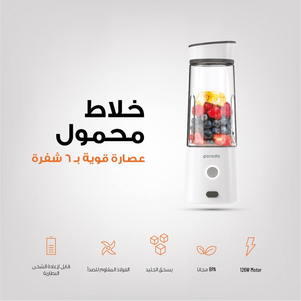 خلاط بورودو لايف ستايل 6 شفرات 400 مل - أبيض