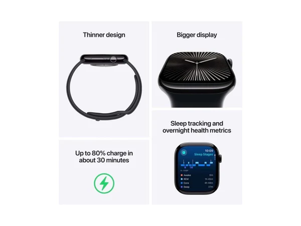 ابل ساعة سيريز الجيل العاشر جي بي اس - 46 ملم - هيكل من الألومنيوم باللون الأسود مع حلقة رياضية بالحبر
